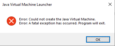 Error Could Not Create The Java Virtual Machine Error A Fatal Exception Has Occurred Programmerah
